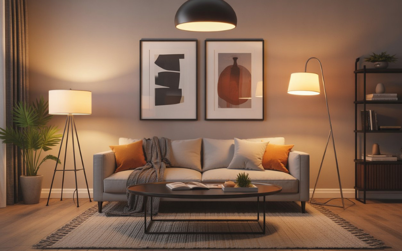 • Task vs. Ambient Lighting: Position reading lamps (floor or table) next to sofas or chairs, approximately 60–70 cm from seating.