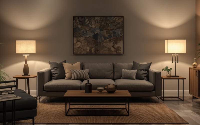 Balance ambient lighting with task lighting to avoid harsh shadows or overly bright spots. Good lamp placement enhances room comfort and usability.